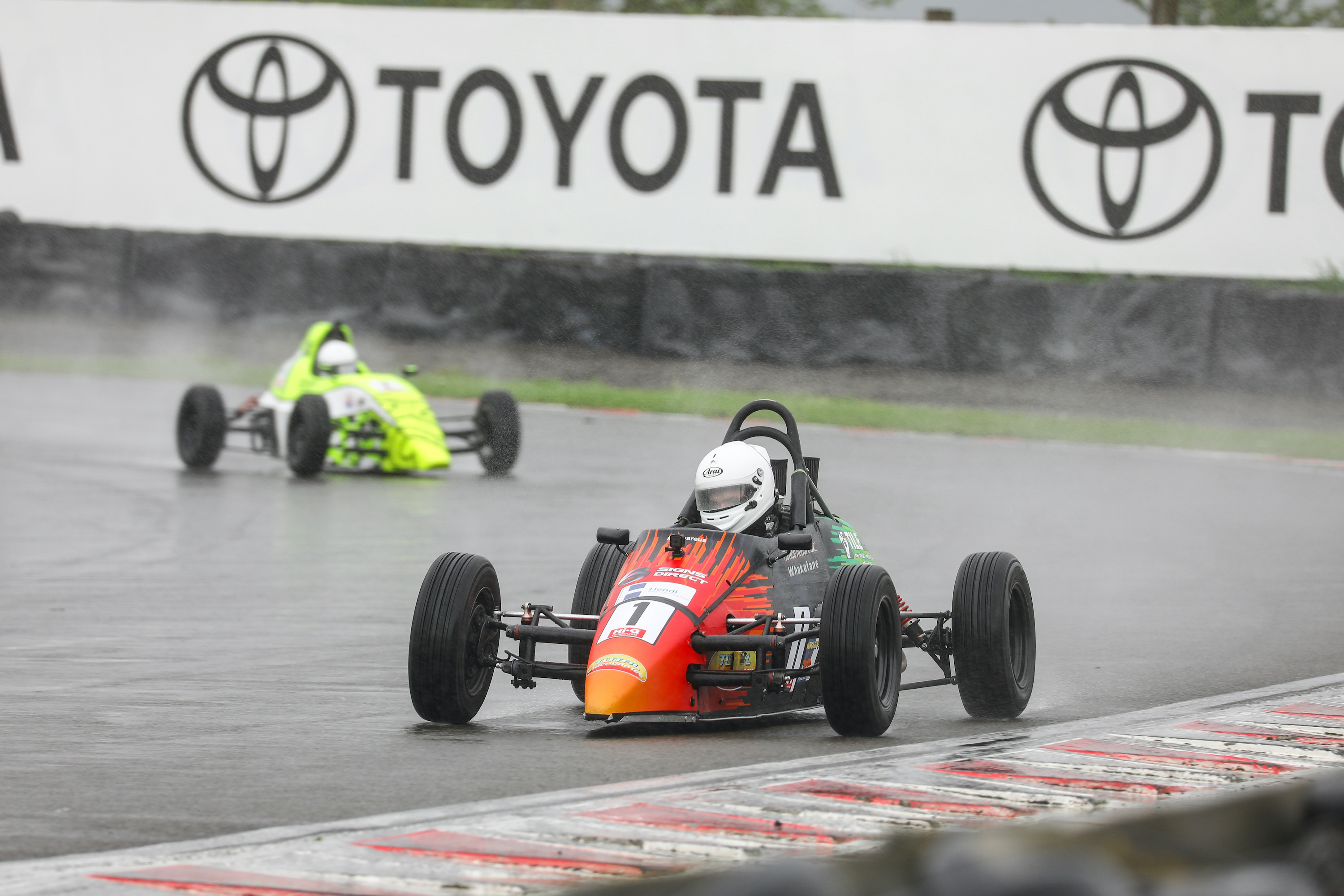 Reece Hendl-Cox has prevailed in a thrilling opening race of the season at Manfeild Circuit Chris Amon.