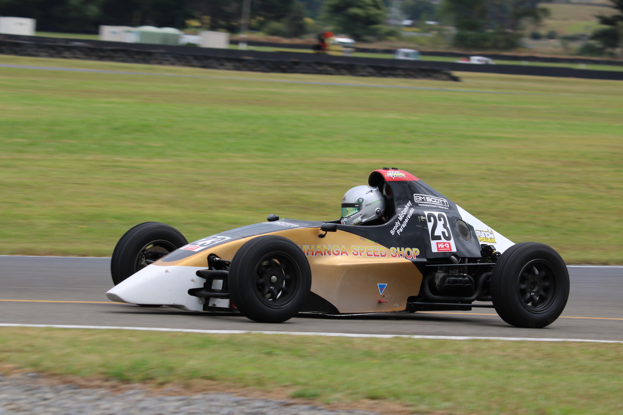 Brody McConkey has taken Race 15 of the 2017/18 Hi-Q Components NZ Formula First in front of a magnificent crowd at Manfeild. Callum Crawley snuck home in second, moving him into the lead of the championship following a post-race penalty for Kaleb Ngatoa.