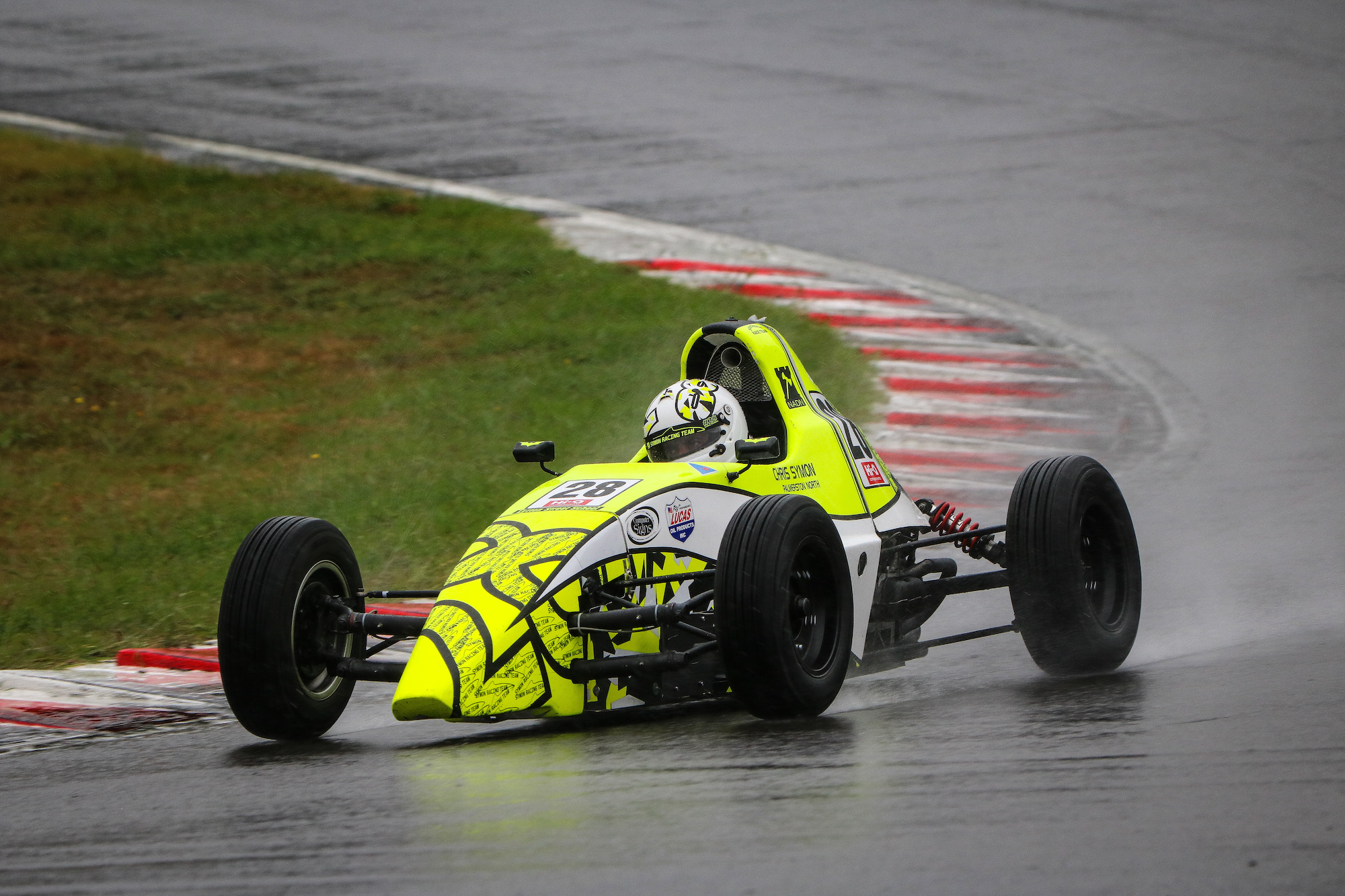 Chris Symon has returned to the top step of the podium in the 2018/19 Hi-Q Components NZ Formula First Championship after dominating a wet Race 15 of the series at Manfeild Circuit Chris Amon. Symon led the field home by over nine-seconds and set the fastest lap of the race by some margin.